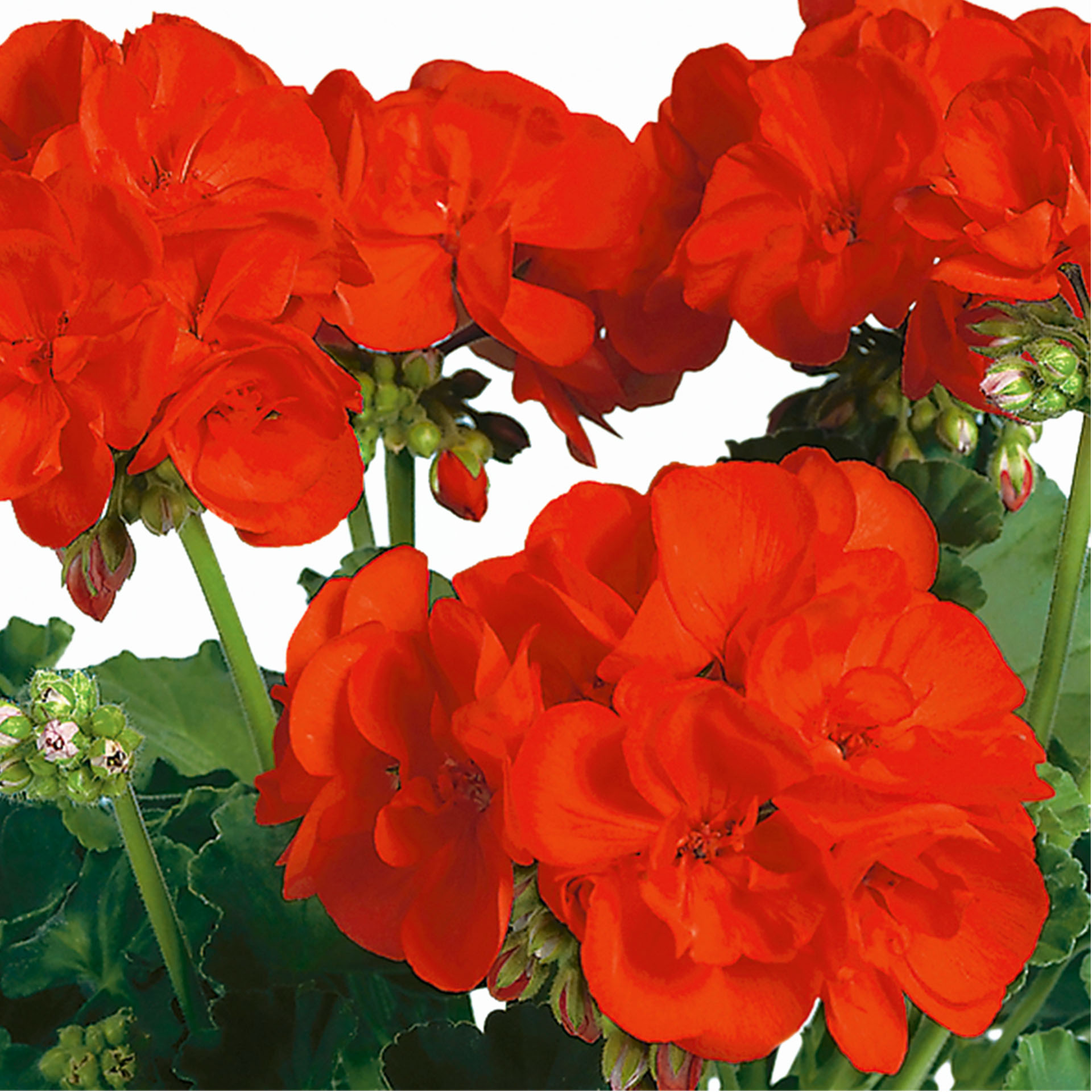 Die Geranie gehört zu den beliebtesten Balkonpflanzen, weil sie ein sehr robuster Dauerblüher ist. In unserer Gärtnerei kultivieren wir über 30 verschiedene Sorten von stehenden und hängenden Geranien. Die Sorte ‘Anthony’ wächst kompakt mit hellgrünem Laub und hat halbgefüllte scharlachrote Blüten. Von Mai bis Oktober wachsen immer neue Blüten nach. Sie erreicht eine Wuchshöhe von 30-50cm.