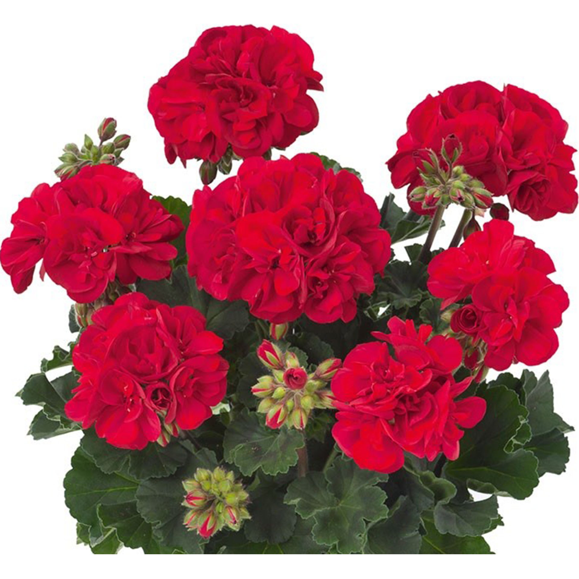 Die Geranie gehört zu den beliebtesten Balkonpflanzen, weil sie ein sehr robuster Dauerblüher ist. In unserer Gärtnerei kultivieren wir über 30 verschiedene Sorten von stehenden und hängenden Geranien. Die Sorte 'Castello Bernd' wächst kompakt mit dunkelgrünem Laub und hat dunkelrote Blüten. Von Mai bis Oktober wachsen immer neue Blüten nach. Sie erreicht eine Wuchshöhe von 30-50cm.