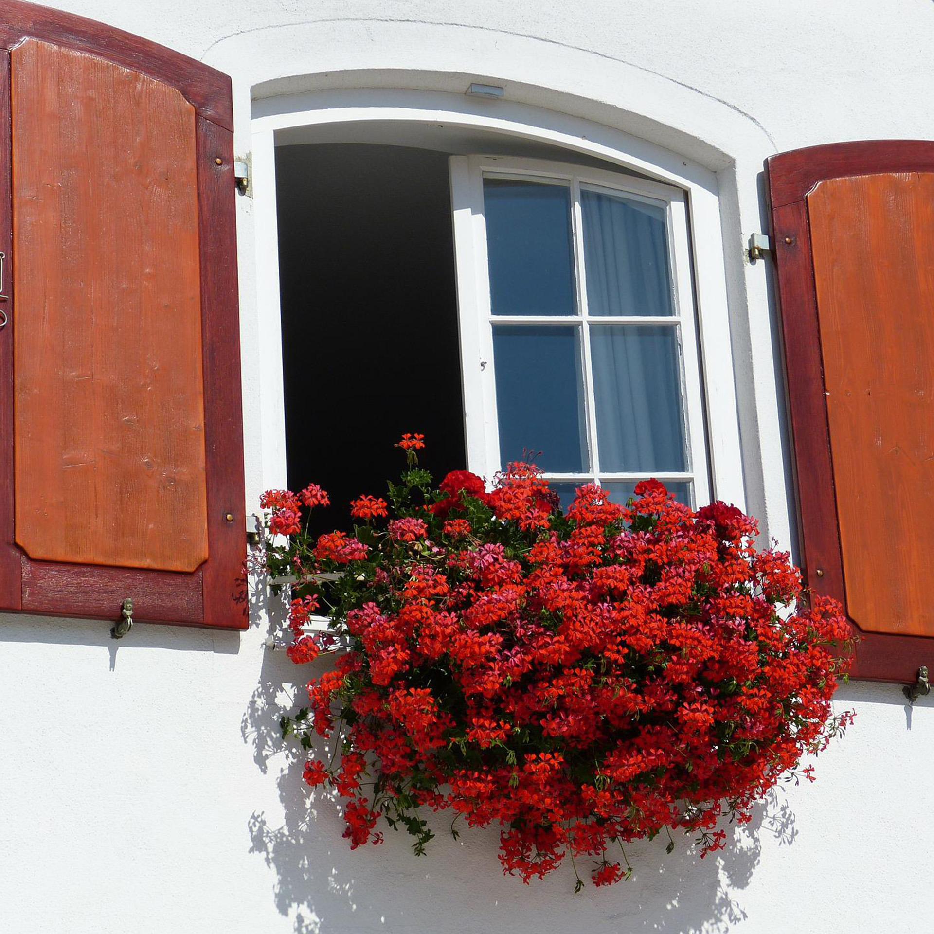 Die Geranie gehört zu den beliebtesten Balkonpflanzen, weil sie ein sehr robuster Dauerblüher ist. In unserer Gärtnerei kultivieren wir über 30 verschiedene Sorten von stehenden und hängenden Geranien. Die Sorte 'Balcon Imperial Rot' ist starkwachsend und hat einfache leuchtend rote Blüten. Dies ist die Sorte, die man auch als „Bayerische Geranien“ kennt. Ihre Triebe können bei günstiger Entwicklung bis 80cm lang werden. Wegen der einfachen, also ungefüllten Blüten, ist diese Geranie Insektenfreundlich. Von Mai bis Oktober wachsen immer neue Blüten nach.
