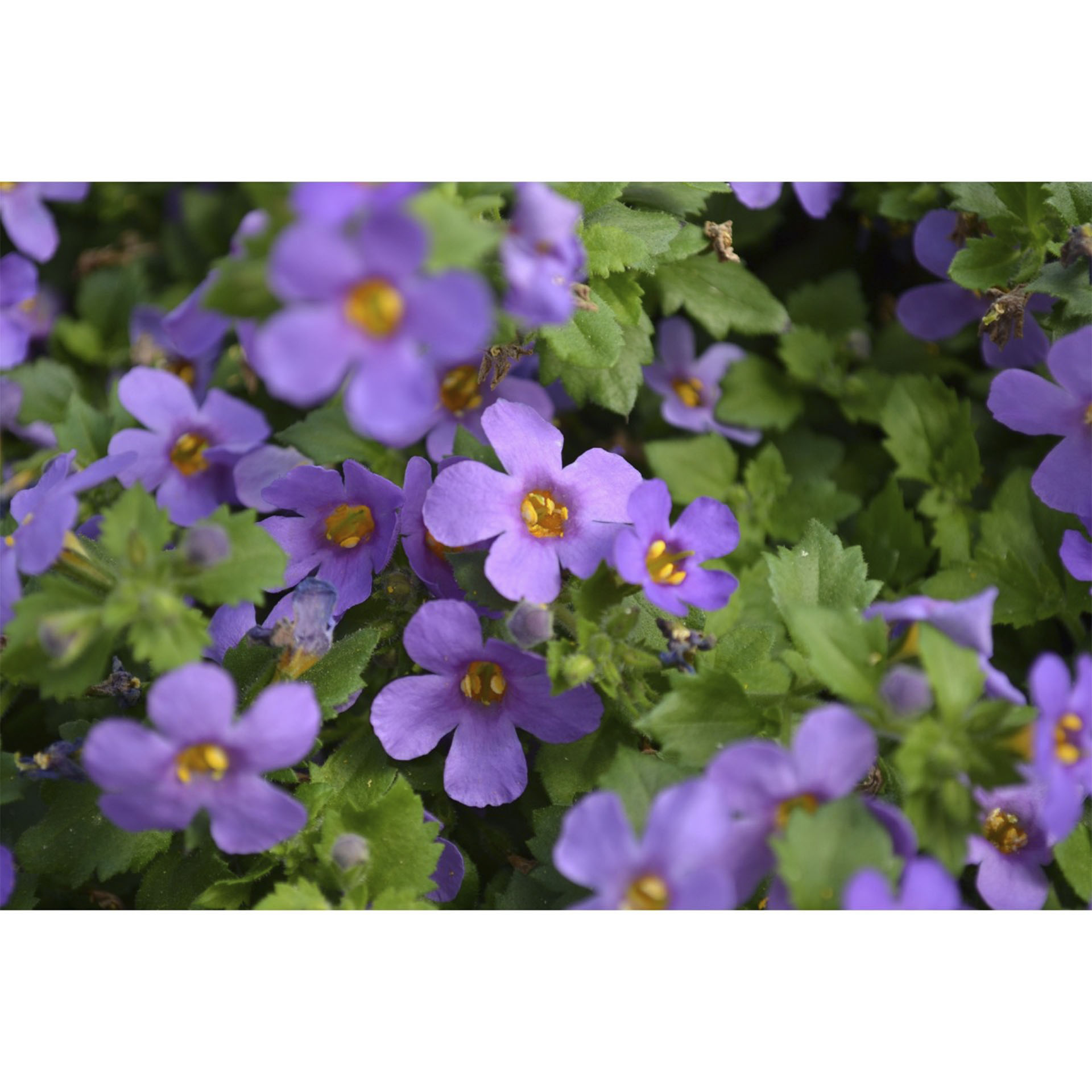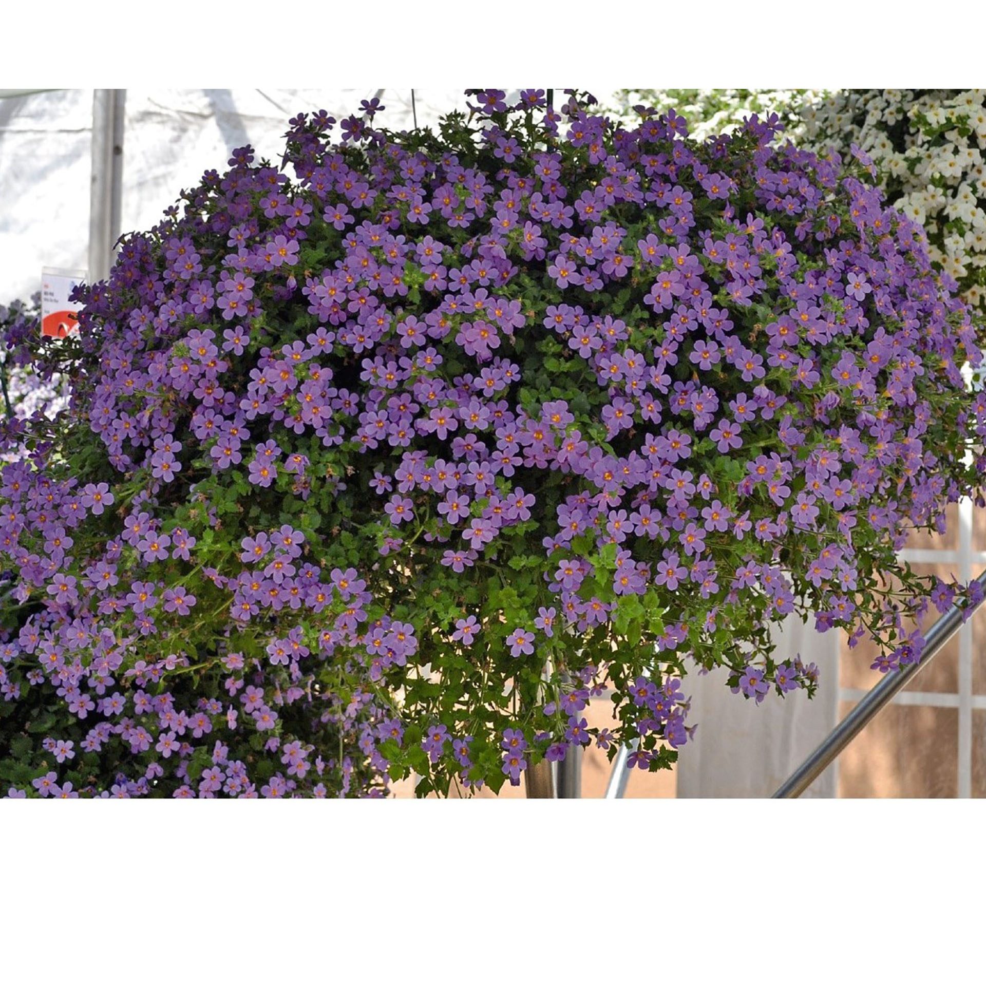 Die Bacopa wird auf Deutsch auch Schneeflockenblume oder Kleines Fettblatt genannt. Die ursprüngliche Farbe der Wildart ist weiß. Die Sortengruppe Bahia hat recht große Einzelblüten und einen schönen dichten Wuchs. Ihre Triebe mit den lilafarbenen Blüten werden bis zu 40cm lang.