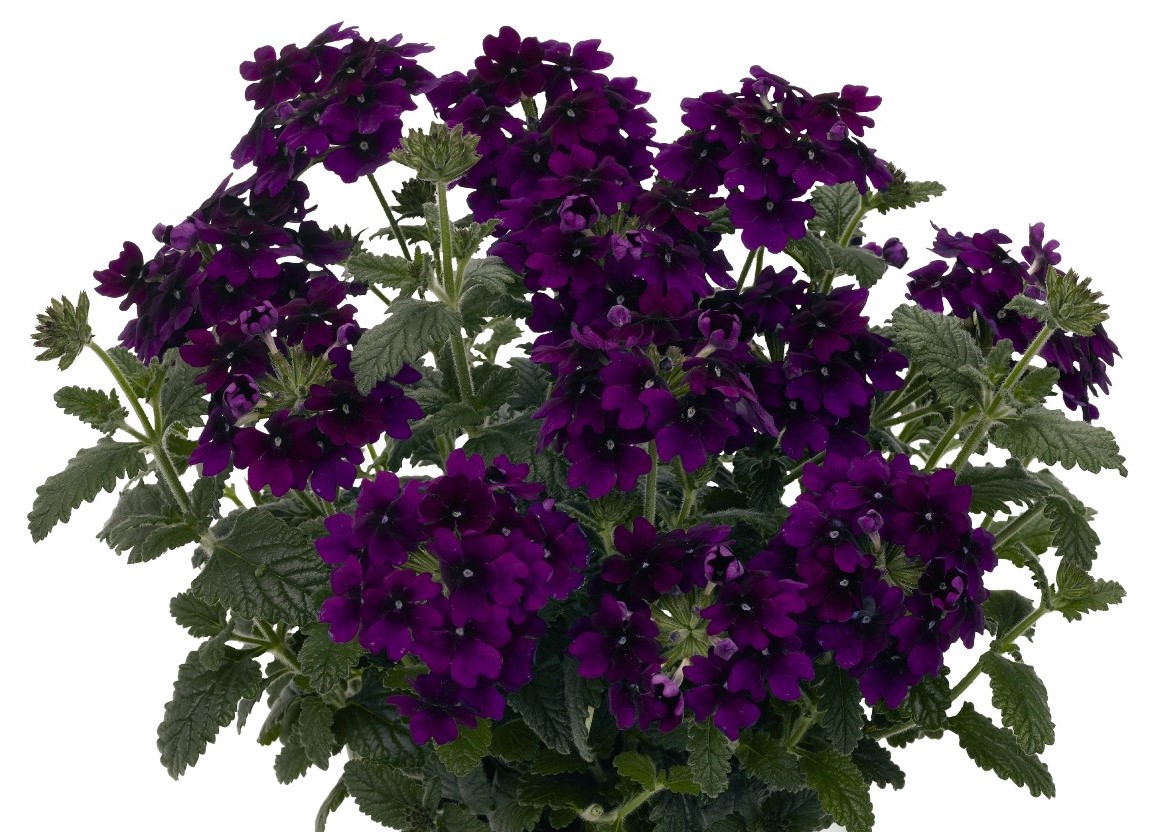 Verbenen werden auf deutsch auch Eisenkraut genannt. Sie sind beliebte und unkomplizierte Sommerblumen. Die kleinen Einzelblüten stehen in runden, tellerförmigen Blütenständen zusammen, die ca. 5-6cm Durchmesser erreichen. Diese Sorte wächst kompakt, halbhängend und hat samtig dunkelviolette Blüten. Die Blüten haben einen dezent würzigen Duft, der vor allem Schmetterlinge anlockt. Aber auch Hummeln und andere Insekten besuchen gerne die Blüten. Den ganzen Sommer über bis zum Frost erscheinen immer neue Blüten.