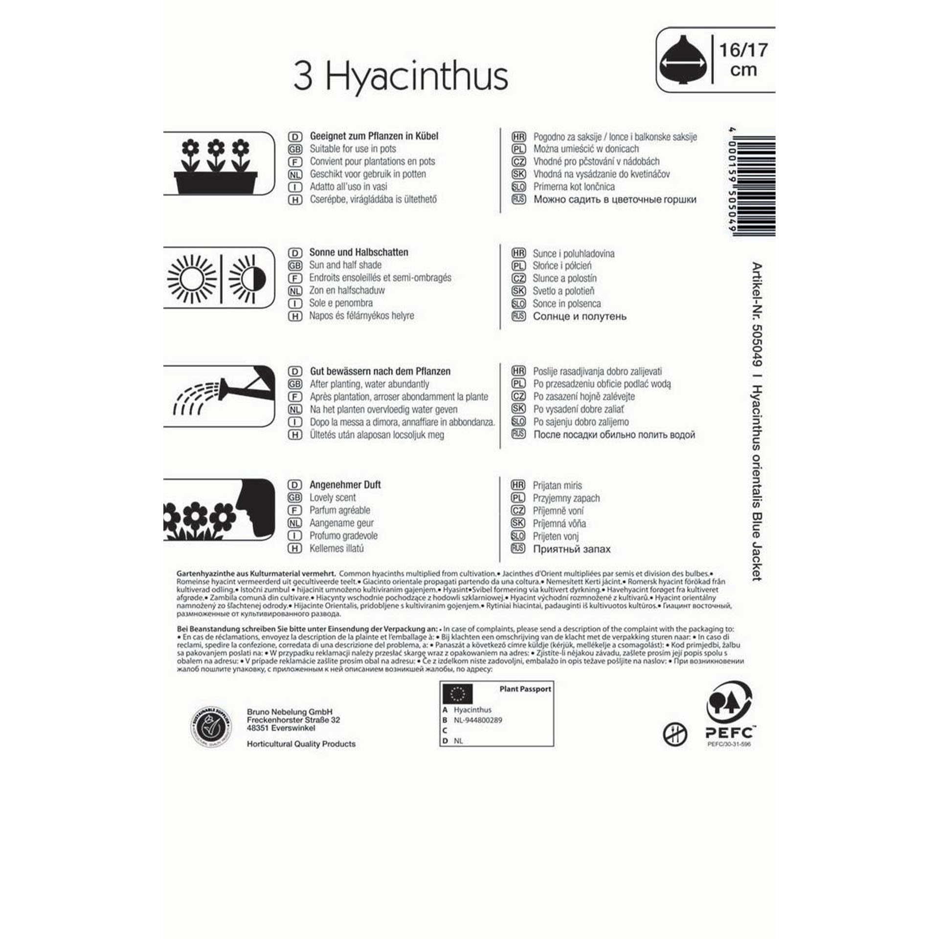 Die außergewöhnliche Hyacinthe 'Blue Jacket' ist eine echte Besonderheit. Sie zeichnet sich durch ihre intensiven blauen Blüten mit einem leicht violetten Schimmer aus. Doch das Schönste an ihnen ist unbestreitbar der überaus angenehme Blütenduft, der für eine wunderbare Frühlingsatmosphäre sorgt.