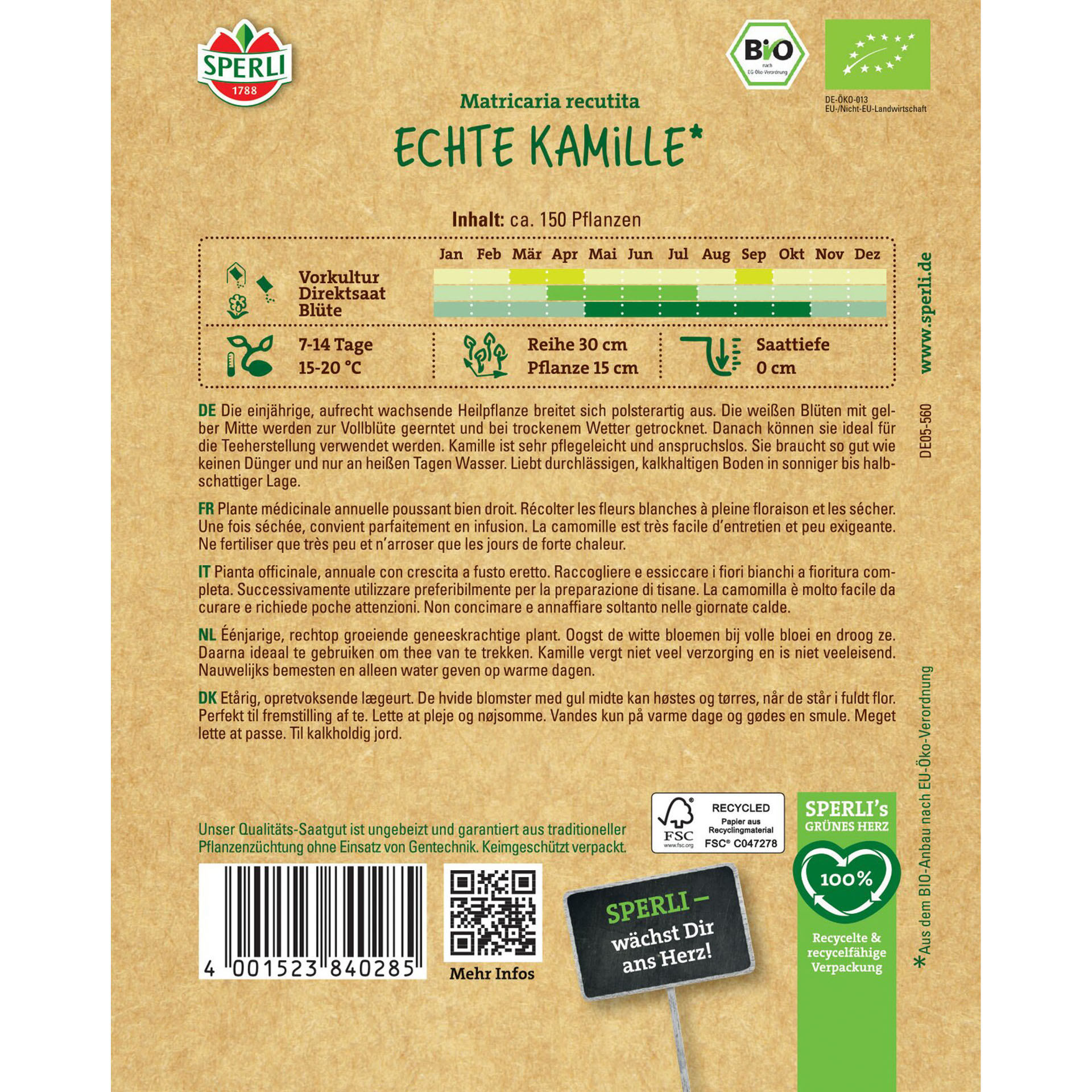 Eigenschaften "BIO Echte Kamille, Kräutersamen"