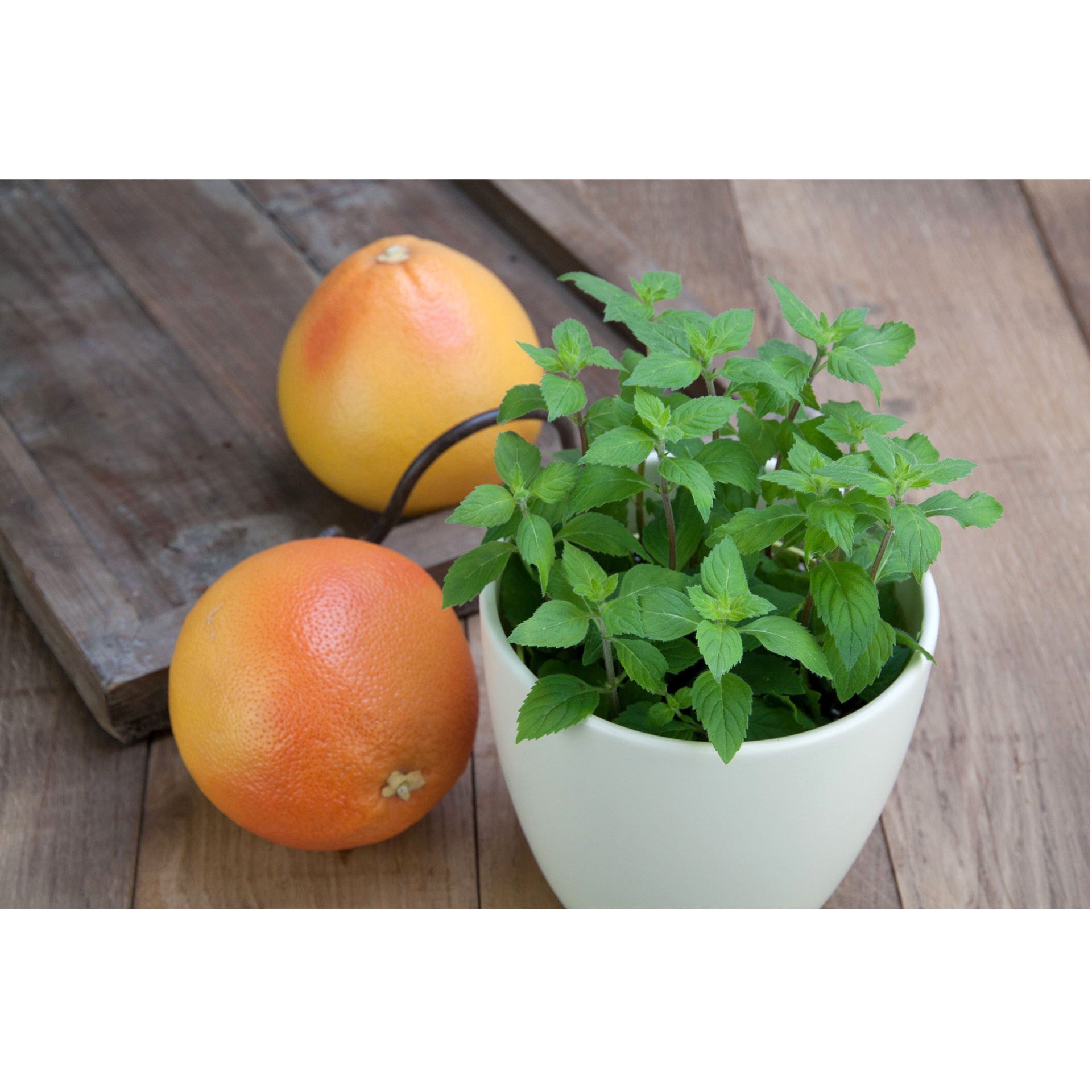 Die Grapefruit-Minze hat einen nur mäßigen bis geringen Mentholgehalt. Aber ihre Blätter und jungen Triebe verbreiten ein frisches, fruchtig-saures Aroma. Sie erinnern an eine frisch ausgepresste Grapefruit oder aufgeschnittene Pampelmuse. Sie ist eine Bereicherung in dem vielfältigen Sortiment der Minzen. Besonders im Sommer ist sie ideal für erfrischende Getränke – mit oder ohne Alkohol. Sie wächst relativ kompakt und bildet keine übermäßigen Ausläufer. Wuchshöhe 40-60cm.