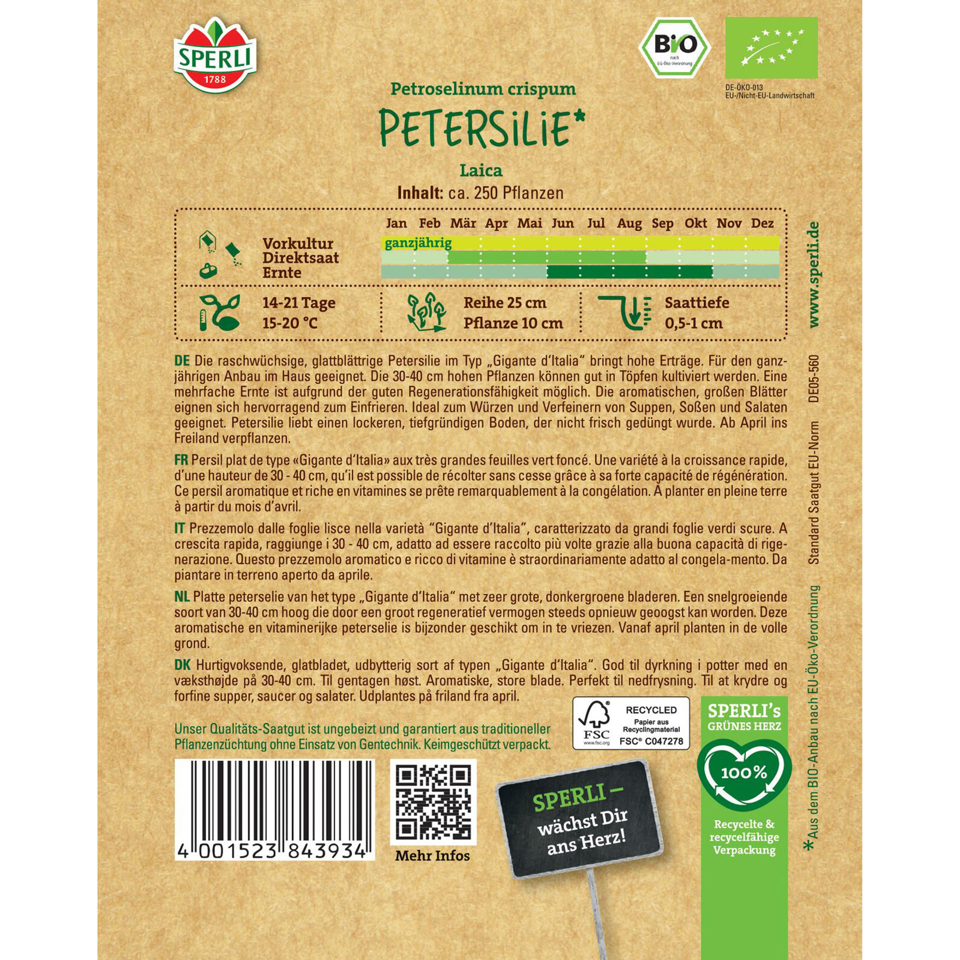 Eigenschaften "BIO Petersilie glatt 'Laica', Kräutersamen"