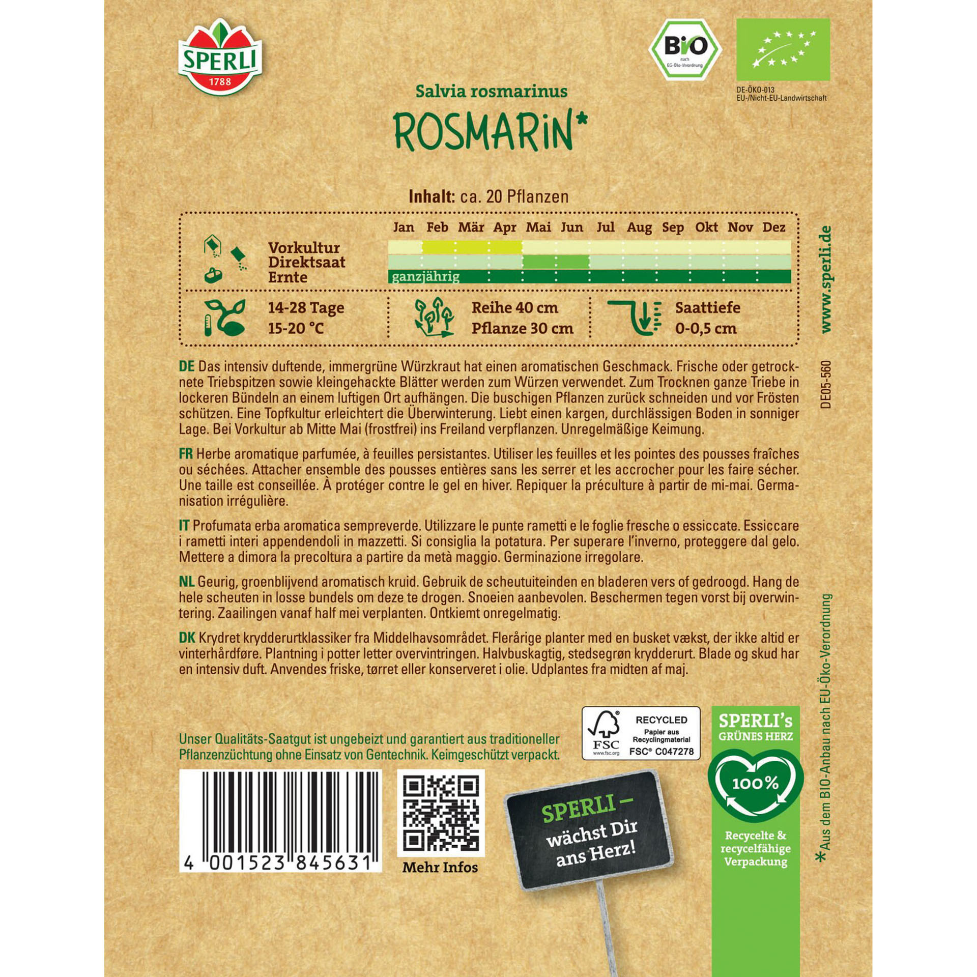 Eigenschaften "BIO Rosmarin, Kräutersamen"