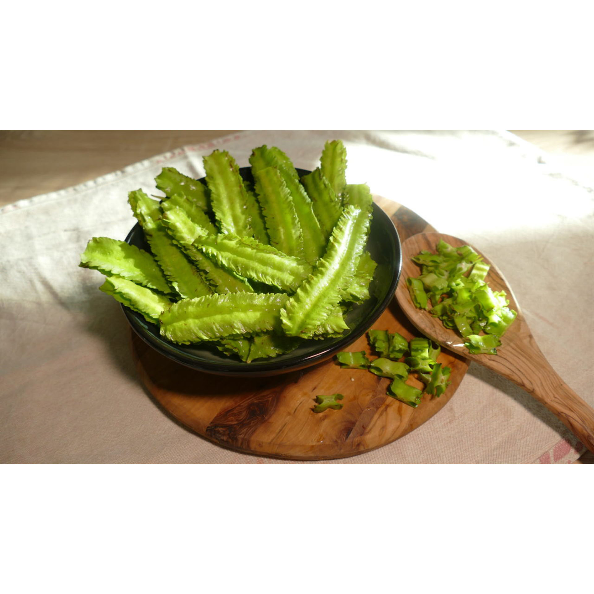 Die Schoten der Spargel-Erbse brät man als Ganzes wie Zuckerschoten oder gibt sie in Suppen und Currys. Auch die jungen Triebe mit den Blättern können als Gemüse gedünstet und z.B. in Teigtaschen gefüllt werden. In ca. 1 cm lange Stücke geschnitten sind die rohen Hülsen ein Hingucker auf Salat. Die Spargel-Erbse gilt in England und Asien schon jetzt als Delikatesse!