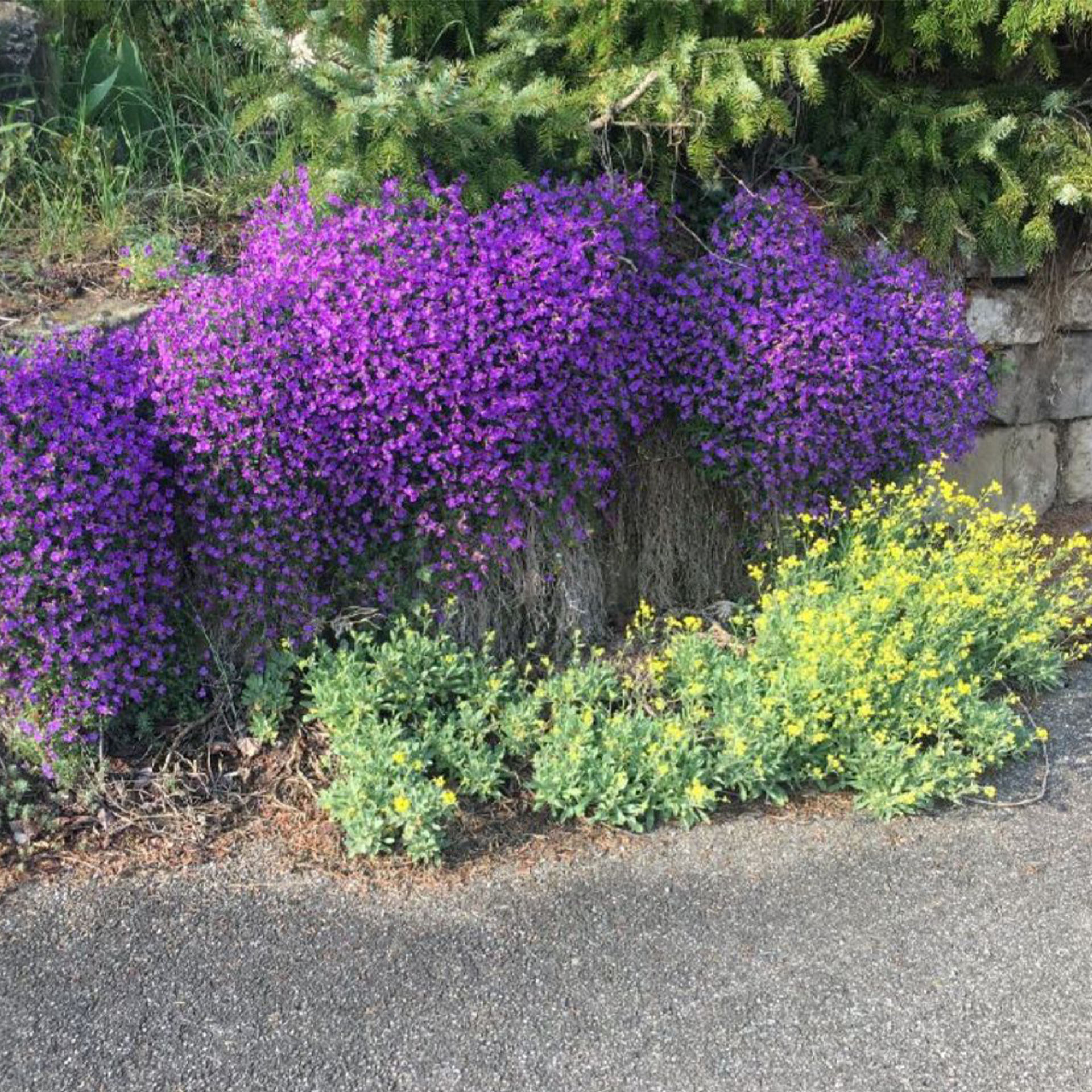 Das pflegeleichte Blaukissen 'Kitte' ist eine wintergrüne Staude, die durch ihre üppige Blütenpracht begeistert. Die unzähligen, kleinen Blüten erstrahlen in einem kräftigen Blau-Violett und bilden dichte Blütenteppiche, die jeden Garten oder Balkon in ein farbenfrohes Blütenmeer verwandeln. Sie sind eine beliebte Nektarquelle für Bienen, Hummeln und andere Insekten.