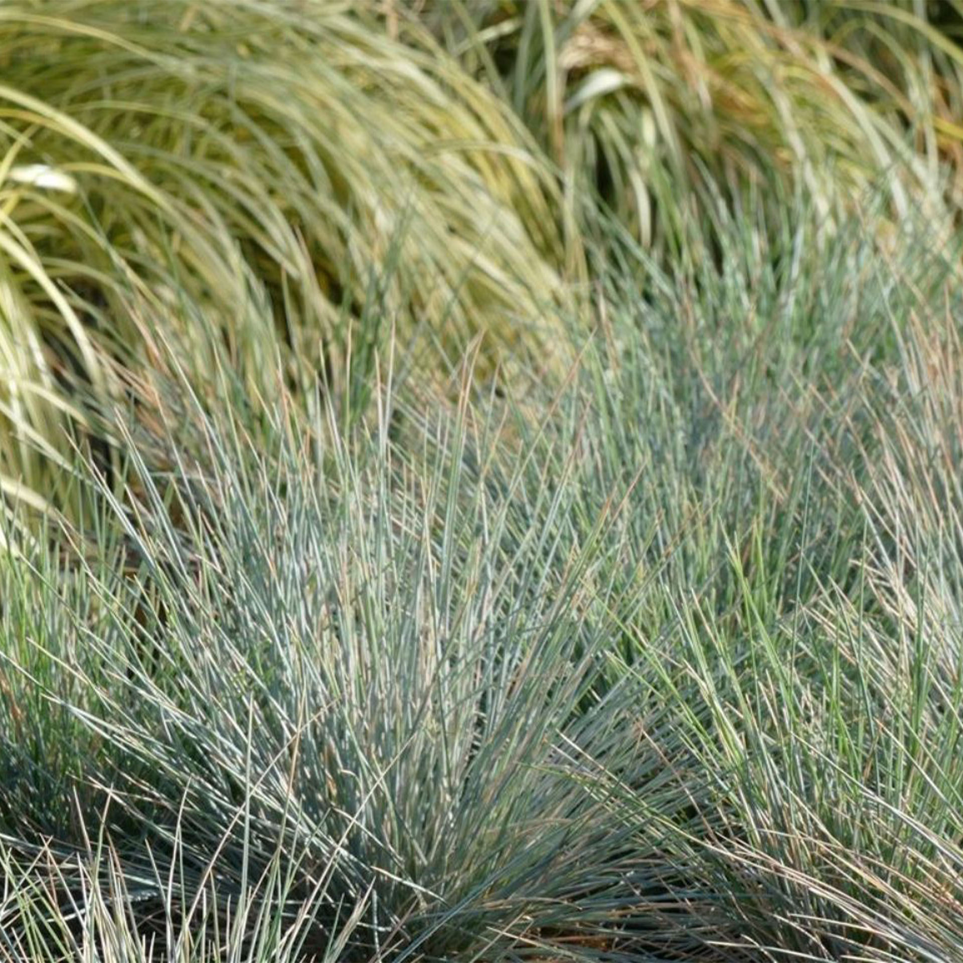 Der Blauschwingel 'Azurit' ist ein Ziergras mit gelblich-braunen Blüten und blau-grauem Laub. Perfekt für den Steingarten.