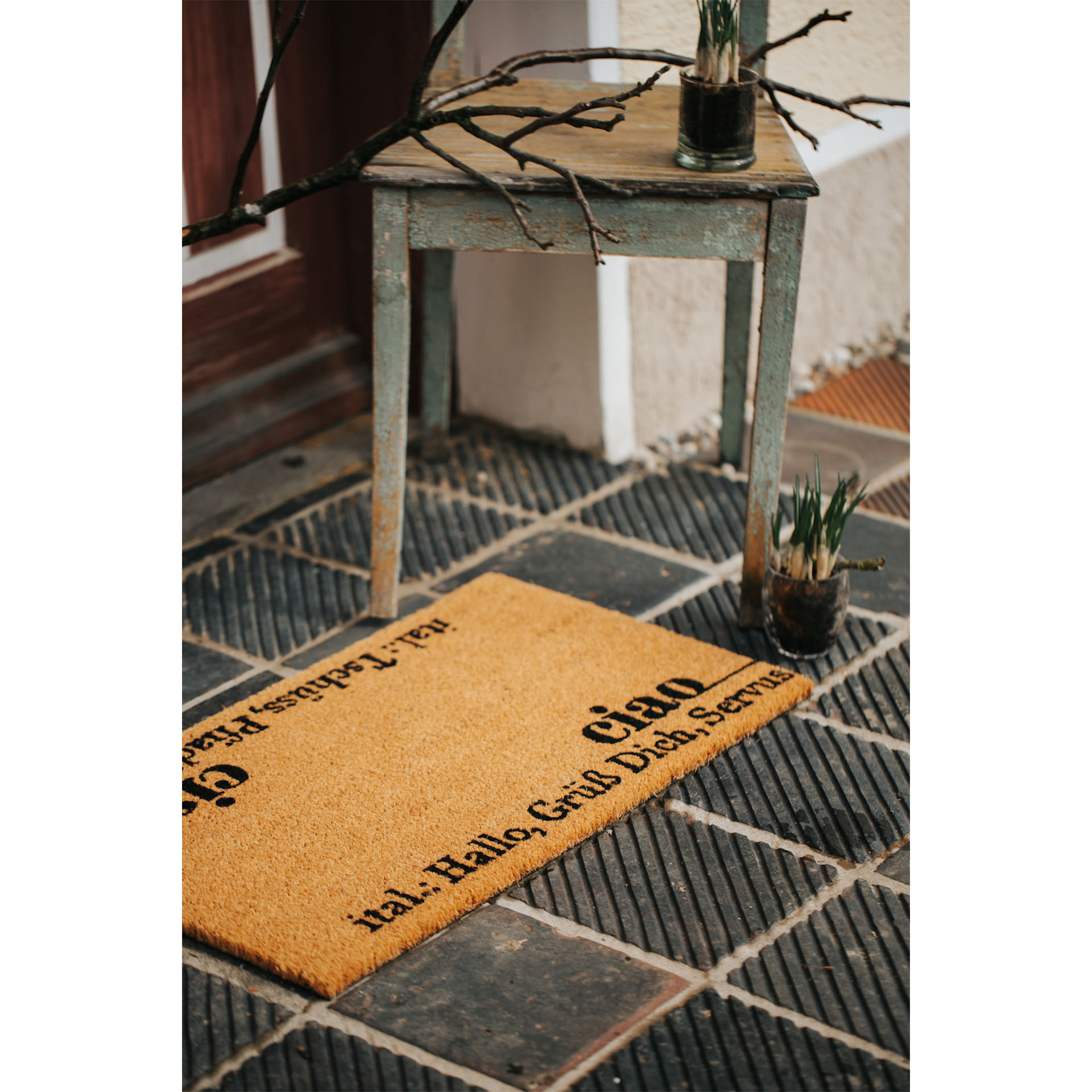 Der Kokosteppich ist als Fußabtreter ein praktisches und dekoratives Element für Ihren Eingangsbereich. Schmutz und Feuchtigkeit werden von den Schuhen der Besucher abgefangen. Dies hilft, den Innenbereich sauber zu halten.