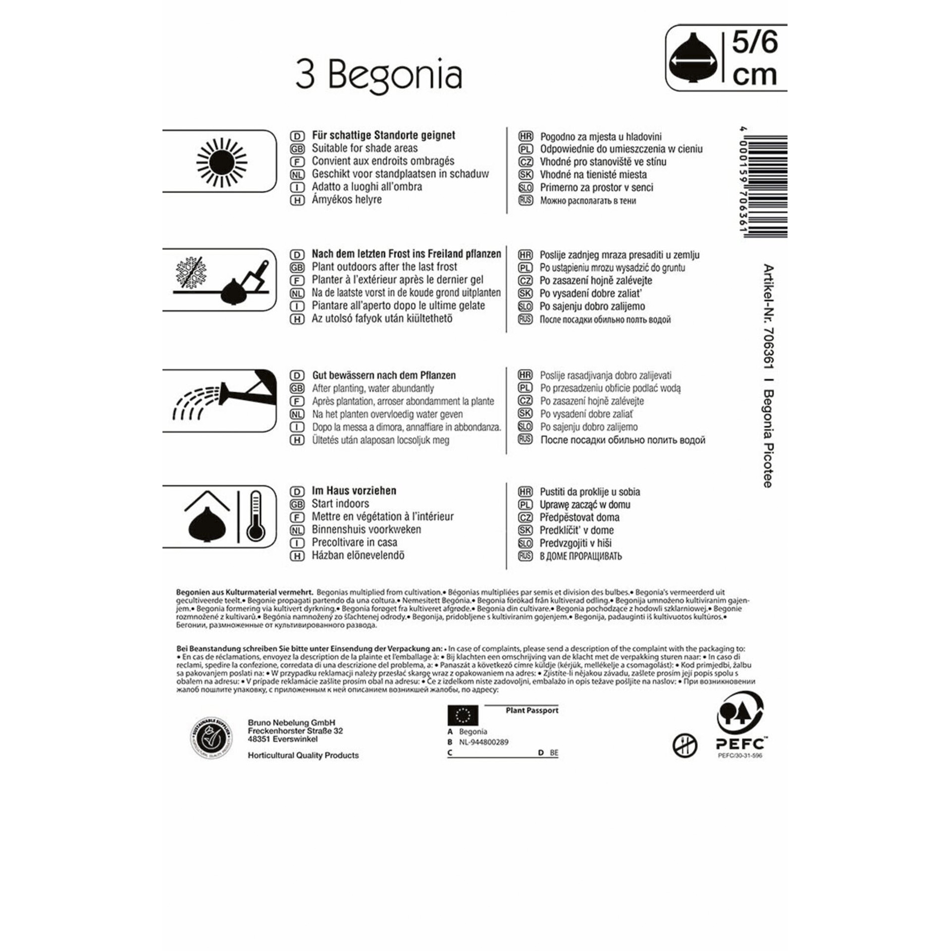 Diese Begonie erstrahlt in kräftigem Orange. Auffällig ist der rote Blütenrand, der die Knollenbegonie 'Picotee' zu einem echten Blickfang macht. Durch die außergewöhnliche Farbgebung zieht die Pflanze sowohl im Beet als auch im Pflanzkübel die Aufmerksamkeit auf sich. Ein schattiger Standort ist am besten für die Anpflanzung geeignet. Die Wuchshöhe beträgt 25cm.