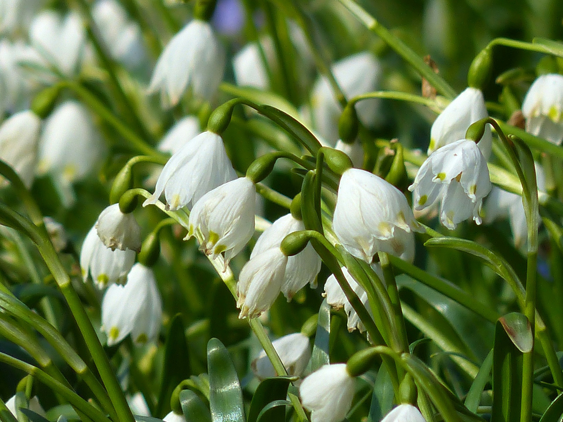 Der Märzbecher erinnert auf den ersten Blick an das Schneeglöckchen. Wie dieses ist er eine kleine Zwiebelpflanze. Die weißen, glöckchenförmigen Blüten sind aber etwas breiter und fallen durch einen kleinen gelblichgrünen Fleck am unteren Zipfel jedes Blütenblattes auf. Auch der Märzbecher kann schon im Februar blühen, im März ist aber der Höhepunkt der Blütezeit. In Deutschland kommen Märzbecher in der Natur vor, sind aber so selten geworden, dass sie auf der Roten Liste der bedrohten Pflanzenarten stehen.