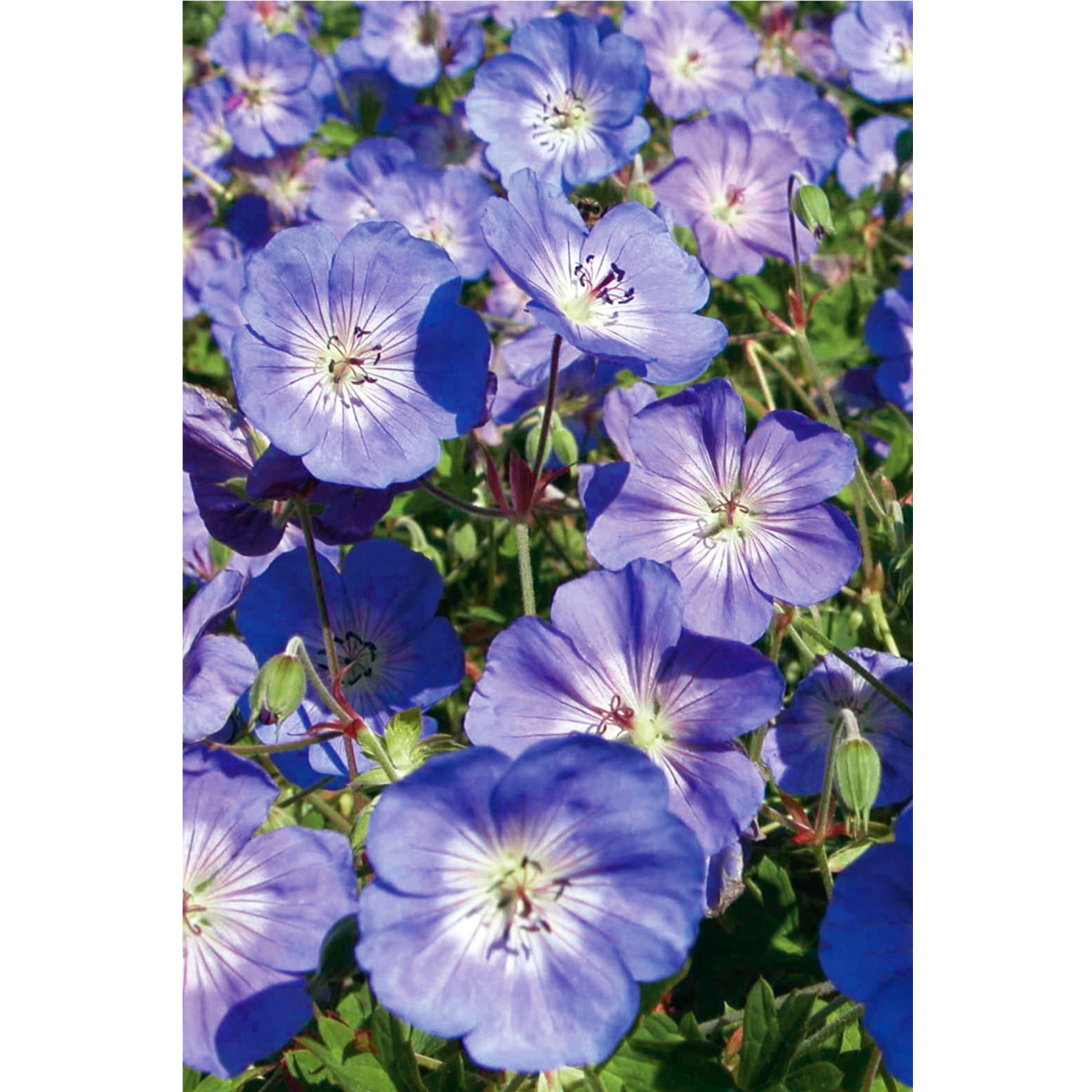 Dieser Storchschnabel ist eine relativ neue Sorte. Er ist besonders wuchsfreudig, kann bis zu 60cm hoch und 80cm breit werden. Er hat eine sehr lange Blütezeit: von Juni bis Oktober erscheinen die lilablauen Blüten.