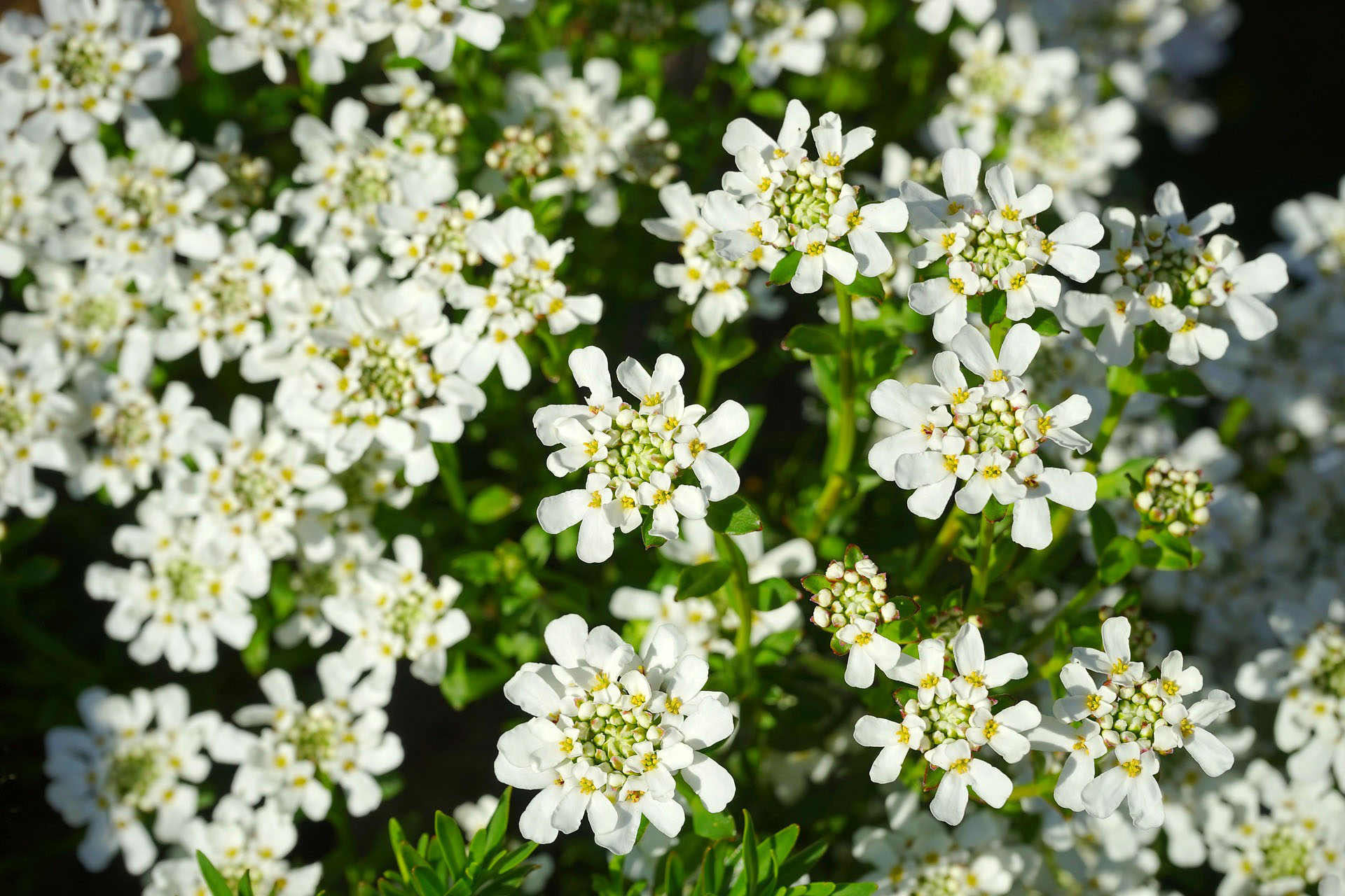 Die Schleifenblume ist eine immergrüne Staude, die im April und Mai eine Fülle von prächtigen weißen Blüten entfaltet. An jeder Einzelblüte befinden sich vier Blütenblätter, von denen zwei etwas kürzer und zwei etwas länger sind. Dies erinnert an eine gebundene Schleife und hat der Blume den Namen gegeben. Diese Blume ist mehrjährig und winterfest.