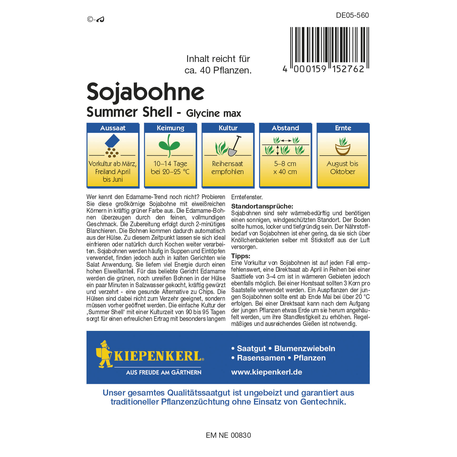 | Aussaatzeit: | April, Mai, Juni |