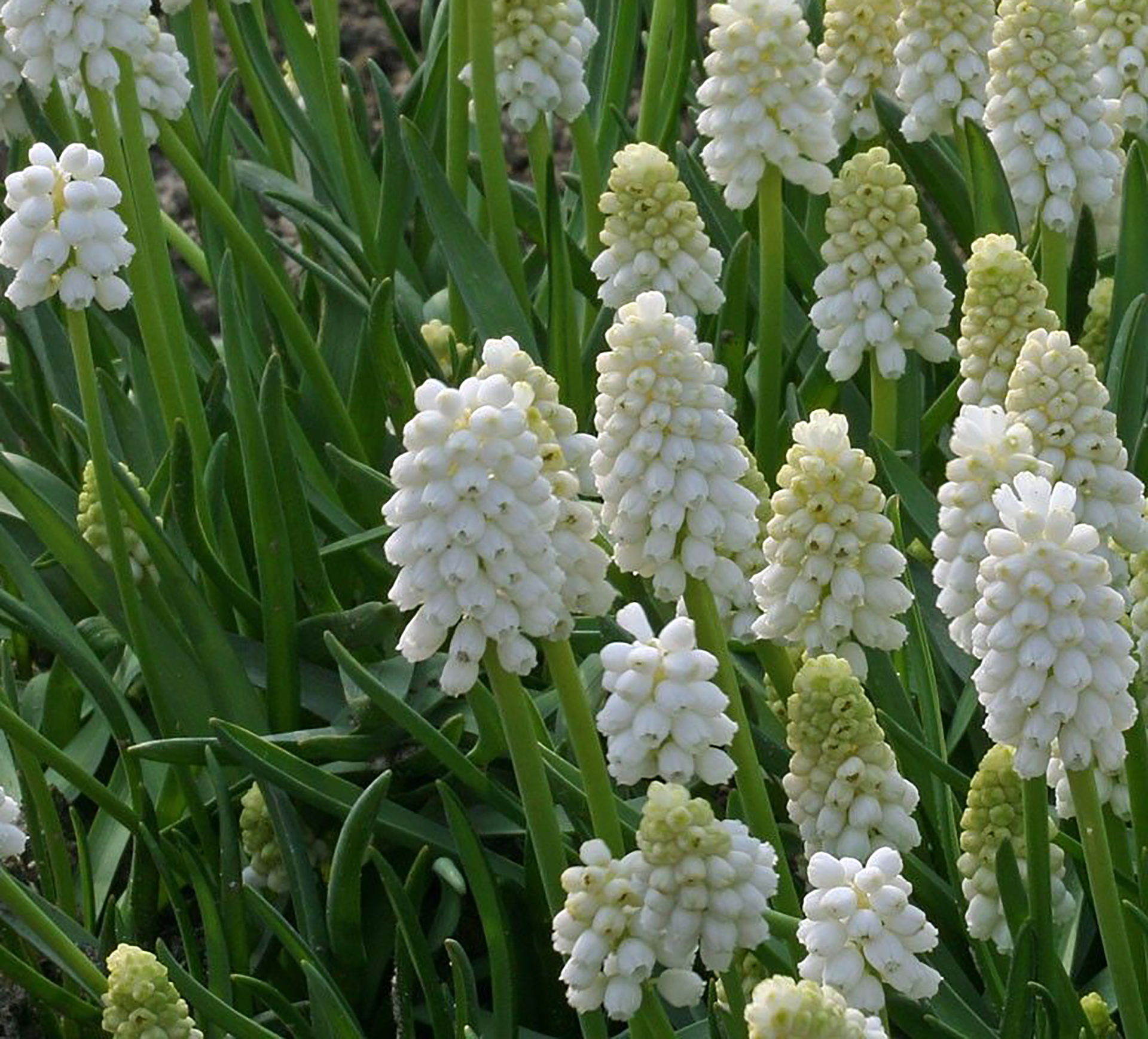 Die Traubenhyazinthen sind beheimatet von Griechenland bis zum Kaukasus, aber werden in Mitteleuropa wohl schon seit dem 16. Jahrhundert angepflanzt und gezüchtet. Beliebt sind die kleinen Zwiebelpflanzen wegen der hübschen Blüten. Wie kleine weiße Perlen bilden die winzigen Einzelblüten einen traubenförmigen Blütenstand.