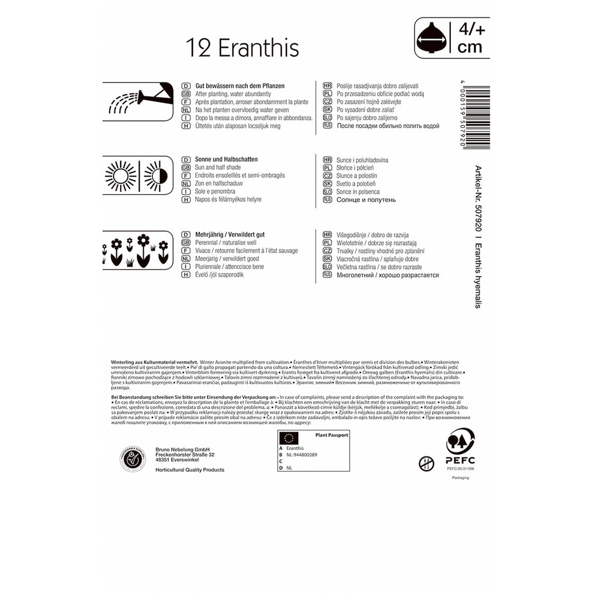 Der Winterling ist eine beliebte Frühlingsblume, da er als eine der ersten Pflanzen den Frühling ankündigt, manchmal schon im Januar. Er begeistert mit seinen leuchtend gelben Blüten, die sich am Abend wieder schließen. Diese Pflanze eignet sich hervorragend zum Verwildern und bildet mit der Zeit dichte, gelbe Teppiche. Nützlingen wie Bienen und Hummeln bieten Winterlinge erste wertvolle Nahrung.