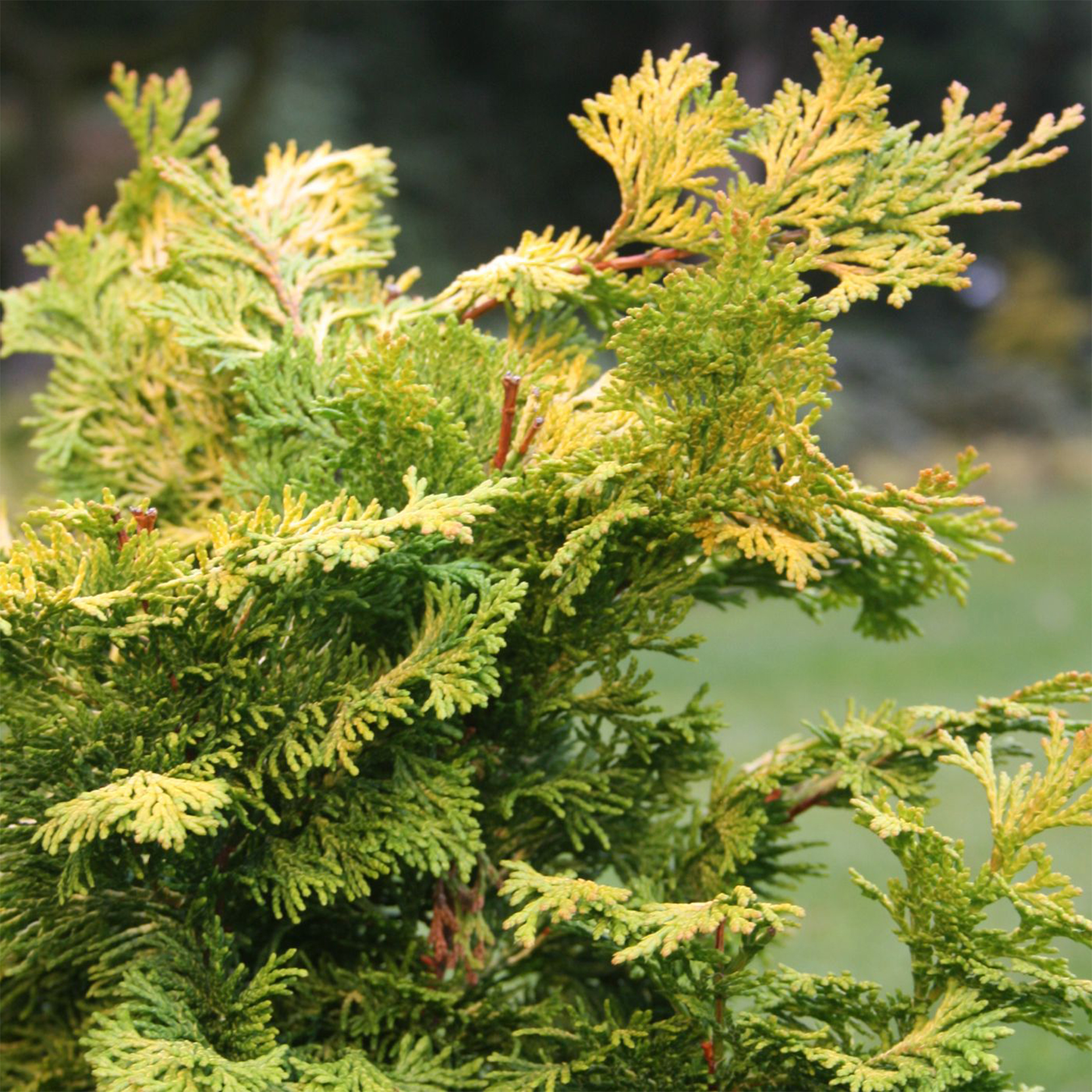 Diese Zypresse ist eine Zwergform der Koniferen, die bis zu 100cm hoch werden kann. Besonders schön ist der bizarre, unregelmäßig aufrechte Wuchs. Die Nadeln sind leuchtend gelb bis gelbgrün.